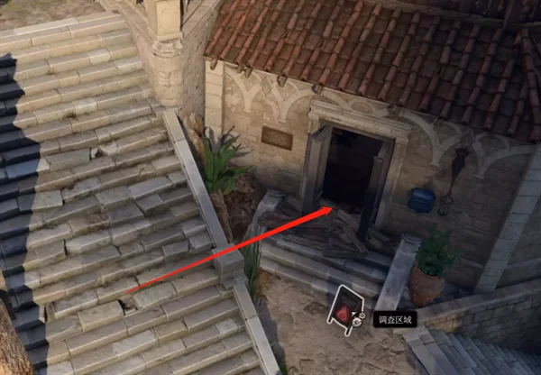 2、玩家接着来到武术杂货店旁边右下角的楼梯处,可以看到一个调查区域,这里就是梨木之家。