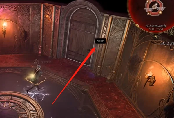1、玩家打开地图找到巫术商店,在巫术商店门前有个幻影,与其对话,他会给我们开四个传送门,我们选择左边的那个传送门。