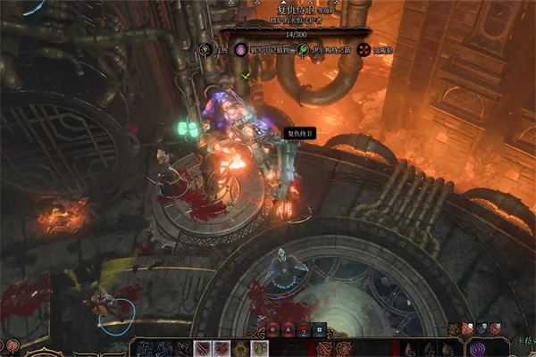 4、在启动了操作平台旁的拉杆之后,我们就会遇到这个任务的最终BOSS,熔炉保护者了,这里我们可以利用熔浆和中间的机关对其造成大量伤害,以此轻松过关。