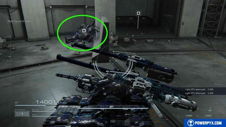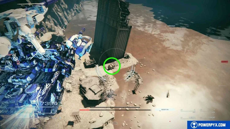 数据日志(图像数据:STK Sketch):在开始时击败第一个大敌群后,您将来到一个拥有大桥的区域。飞到该区域的最右角,有一个残骸的AC,你可以与之互动,这样做还会生成2个拥有银色战斗日志的敌人。