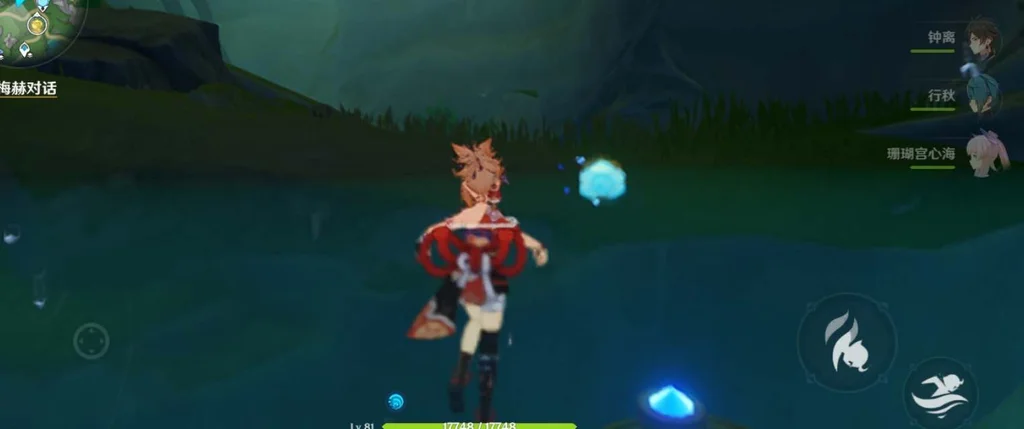 2、湖泊前跳下去下潜到底部,直到看见水柱,有一个显眼的蓝球在水流处;