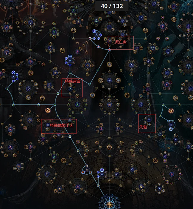 【S23命运试炼赛季】天赋被大幅调整了位置[扔到边上去了],需要解锁至5阶地图,地图仪工艺也会多一个没什么用的[裂隙]工艺,导致获取免费精华工艺的次数大幅下降;剩余的天赋点推荐选择已标注区域