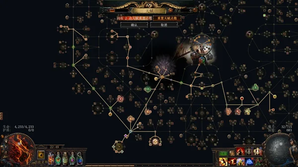 刷图使用如图所示天赋树,还有9点没拿,最好全点地图复制,别点地图词缀效果,再往上会产生难度质变,很多词不好打