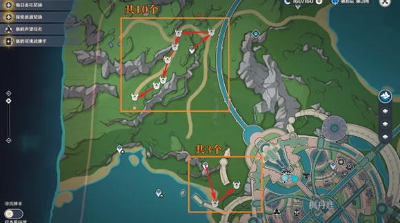 厄里那斯的位置比较分散,存在9个点位,玩家可以先从北向南挑战。
