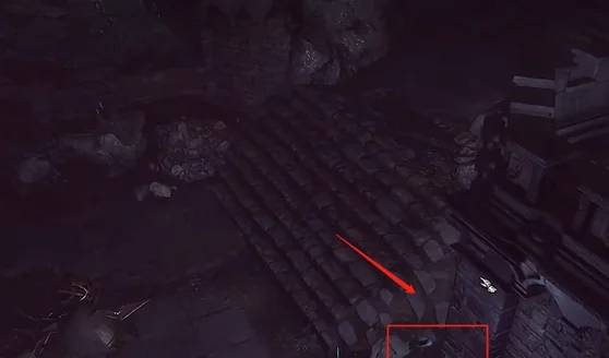 3、往里走第二个炮台我们可以躲在楼梯后面来规避。