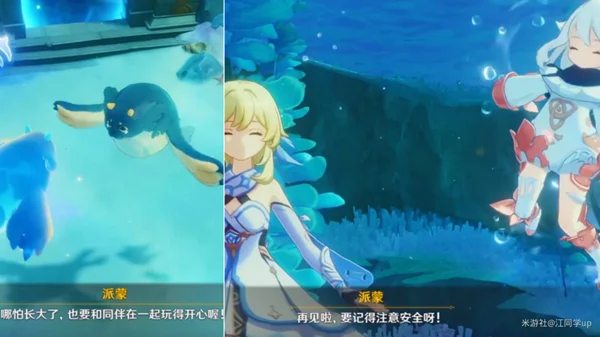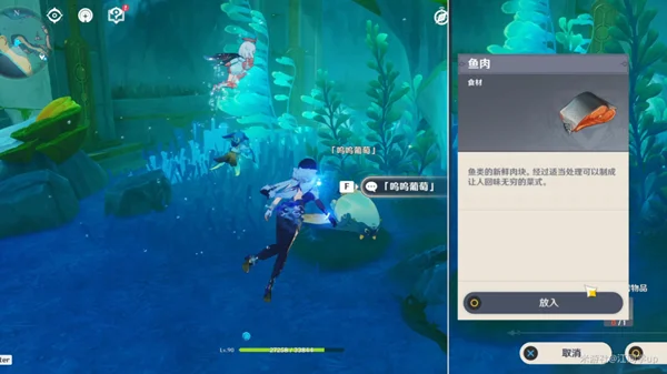 (4)救出【呜呜葡萄】的朋友后,跟着它朋友来到玻璃处对话后,喂第2次【鱼肉】后,第2次任务完成