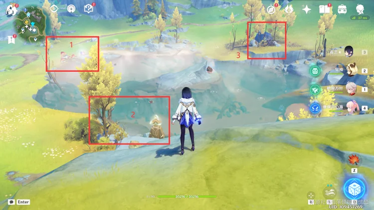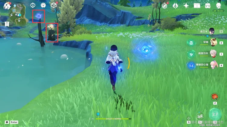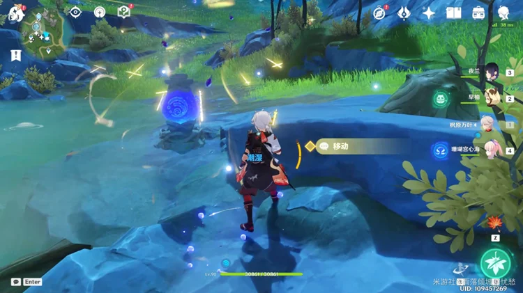 拾取旁边的「水种子」站在水中等待几秒或者用水元素角色释放技能