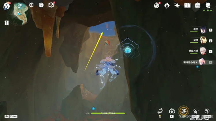接着,我们会被自动传送走,传送后,抬头看,往上游出水面