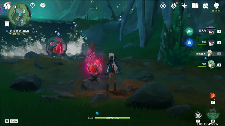 3.与派蒙对话后,前往寻找书页*3:两份在地表,一份在地下。