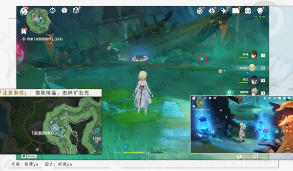 (1)先击碎矿石,之后拾取水种子,激活3个侦测机关