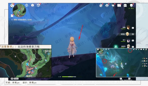4,最后来到玛梅赫家旁的水下,调查这三个海螺,击败出现的魔物,开启宝箱获得第四个零件