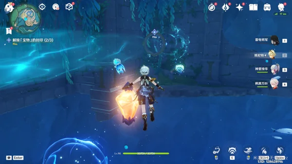 2.随后我们来到水上平台后,我们需要依次开启三处机关