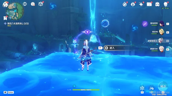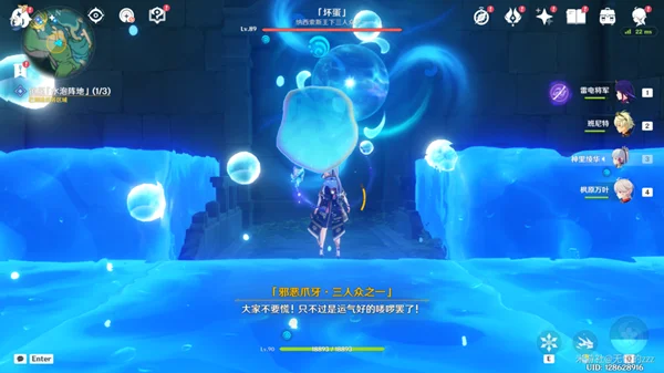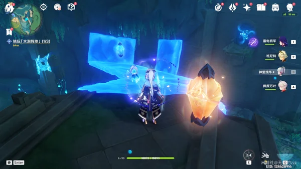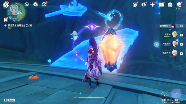 4.随后我们根据任务的指引,攻击前方的水晶,从而形成屏障,保护自身安全,因为被水泡击中,会返回原位