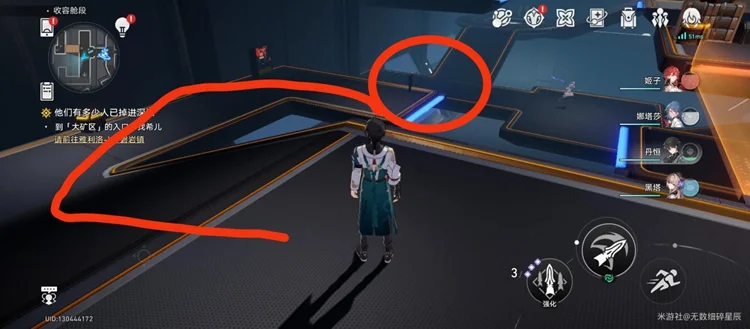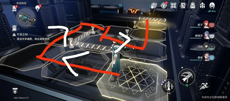 圆圈位置是机关,交互后,机关上面显示蓝色的时候,旁边就会出现路,然后按照路线图,就可以找到贵重战利品啦