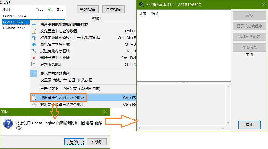 第三步:右键->选择‘找出是什么访问了这个地址’