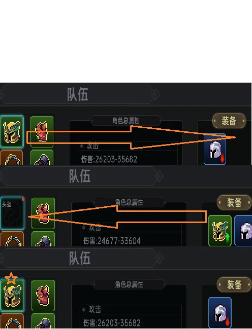 第四步:进入队伍界面替换装备,再换回去,最后装备上想要修改的装备(例如:句芒头盔 神通)。