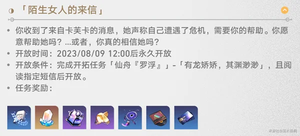 崩坏星穹铁道卡芙卡同行任务陌生女人的来信攻略。不少玩家可能还不太清楚游戏中的这个任务如何完成,下面带来具体的攻略,供各位玩家们参考。