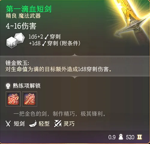 这玩意除了不是+1武器以外基本完美,额外伤害触发完全由玩家掌握,贼用可以一刀30的爆发,目前最强短剑。