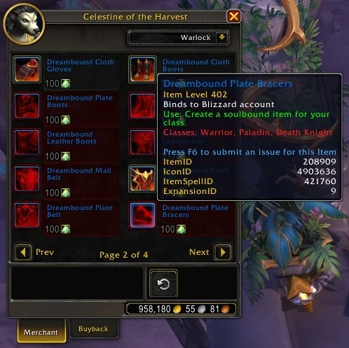 该装备也可以从收获的塞莱斯廷处购买,每件售价100梦涌融合。