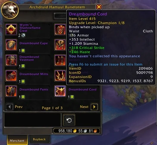 完成梦涌每周任务并获得物品梦涌之蛹,可以让你从大德鲁伊哈缪尔符文图腾购买装等,勇士 1/ 8(可升级到最大装等437)。