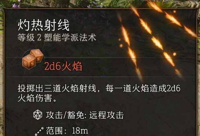 效果是投射出三道火焰每道火焰造成2d6的伤害。