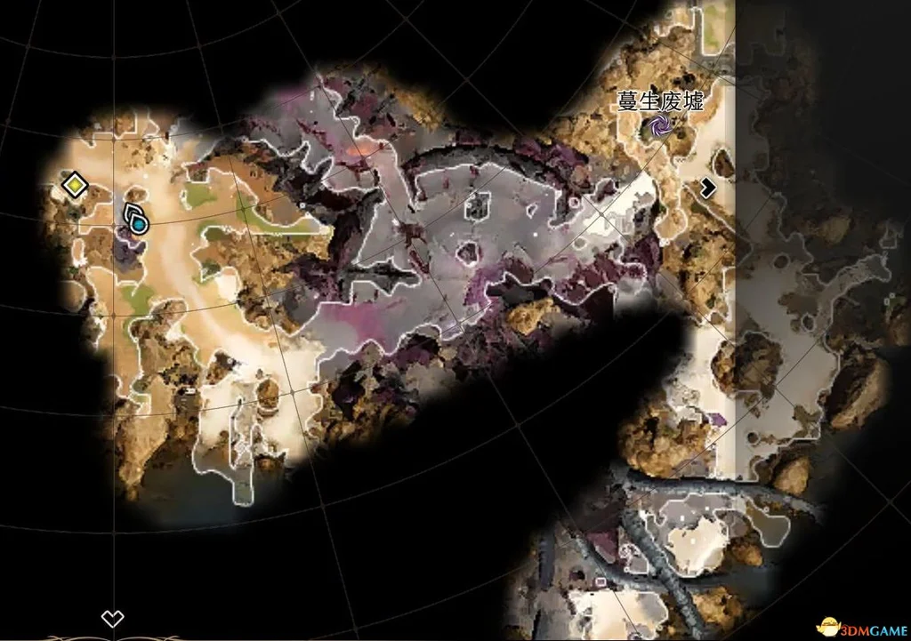 路边山崖、蔓生废墟这些紫色图标点就是传送点,可以利用地图快速传送。