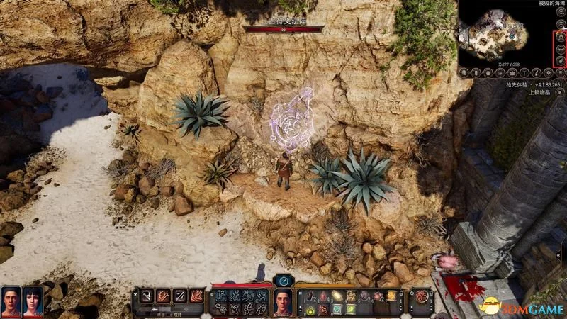 注意右上小地图红框内的三个图标,可以让玩家回营地休息、短休息或是传送。