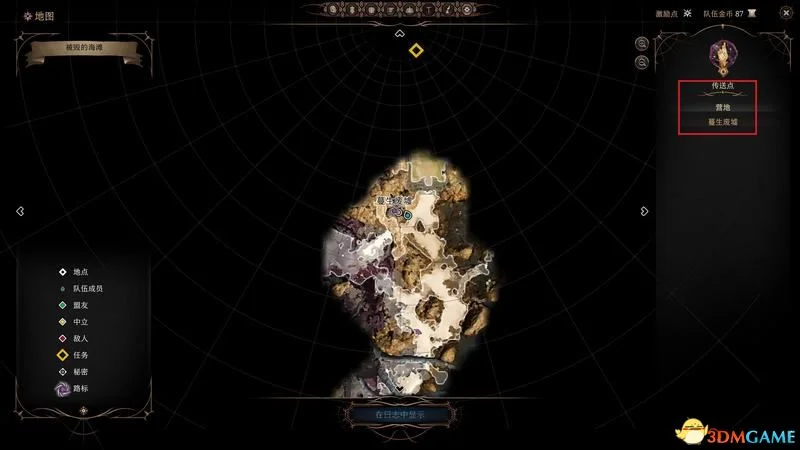 点击传送后,在地图界面点右侧红框的位置就能传送了。