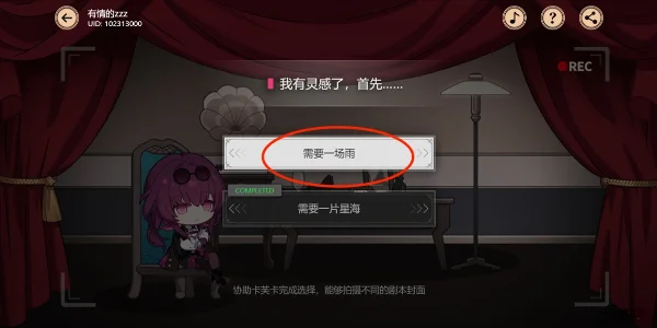 3、继续点击卡芙卡进入下一个独白,我们选择【需要一场雨】;这时剩下的选项因为已经达到选择上限无法继续选择,我们只需要选择可以点击的独白就行。