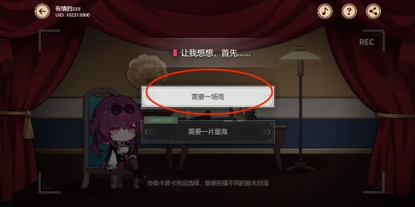 3、继续点击卡芙卡进入下一个剧情独白,这次我们选择【需要一场雨】。