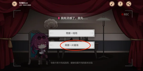 3、继续点击页面空白处进入下一场独白对话。这次玩家选择【需要一片星海】。