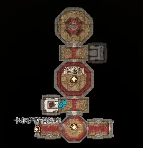 保险库中间的这道门是开旁边两道门的,如果有敲击术直接开就行,注意脚下有陷阱。