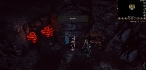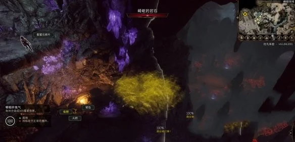 3、“100%路径被打断”的地方是一个可以爬的石壁,跳下去后周围有个包,点燃附近的毒。
