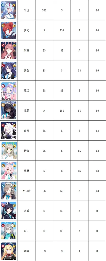9-10分的都是强度非常高、很好用的角色,必练