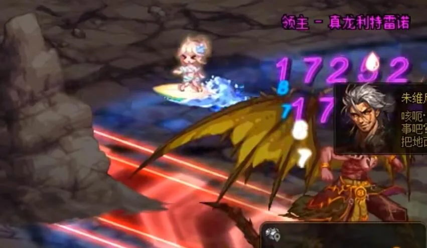 出现上图锁定技能时可以躲在柱子后面,真龙撞柱子之后就会破防,可以趁机输出,没有柱子的话离远一点趁机躲避即可。