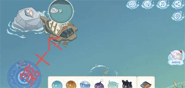 10:第十个,我们激活浪船锚点,然后我们操作浪船离开岛屿,然后即可获得第十个海螺。