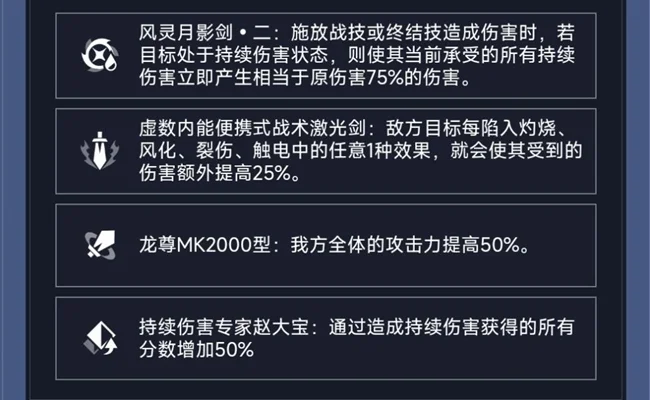 1,主角光环选择:风灵月影剑·二;虚数内能便携式战术激光剑;龙尊MK2000型;持续伤害专家赵大宝