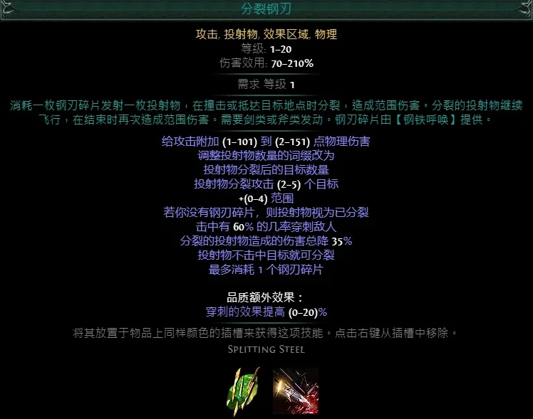 装备分裂钢刃/破碎铁刃可以获得钢铁呼唤,钢铁呼唤用于获取钢刃碎片,从而使分裂钢刃/破碎铁刃打出额外效果。