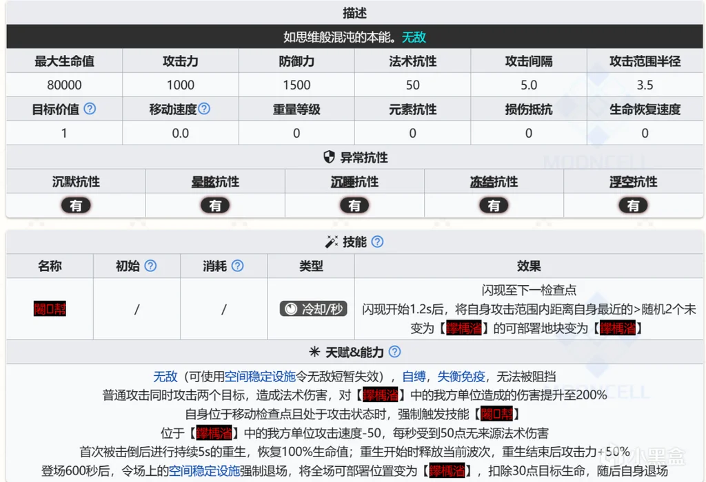 Boss的能力是完全无敌,自带瞬移还有不可阻挡,因为boss是法伤,所以伤害并不低,尽量要多安排群奶作为对策,尤其是加法抗的夜莺,效果奇佳。