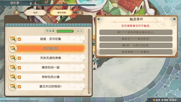很多,但算不上太麻烦,因为条件写的其实很明白了,这里提一下每个人稍微要注意的点,就不全部列出来了(游戏里除了前置事件打的问号,其他条件一个没藏)