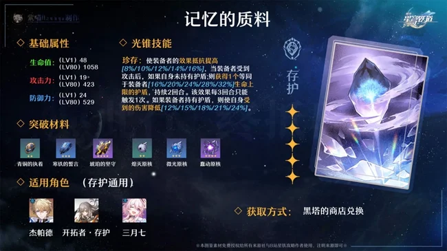 存护的为记忆的质料,是可以免费获取到满叠影的五星光锥。