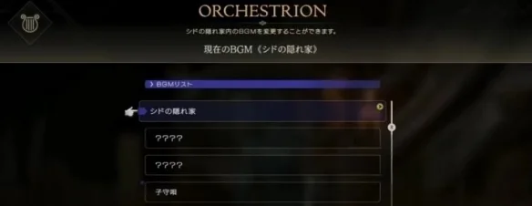在希德的藏身处中与「管弦乐琴」互动可以更换BGM(背景音乐),注意此处说的BGM仅限于在希德的藏身处内的BGM。
