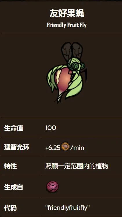 击败果蝇王掉落友好果蝇,帮你照顾植物。