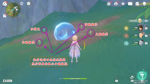 ③:拔掉四朵花后,出现三个骗骗花和一个水精灵,先清怪;