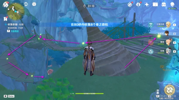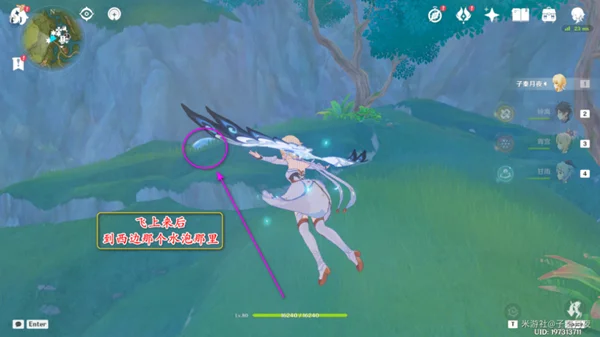 收集两个微粒后,按空格键弹起,借助风场飞过去收集剩下的微粒;