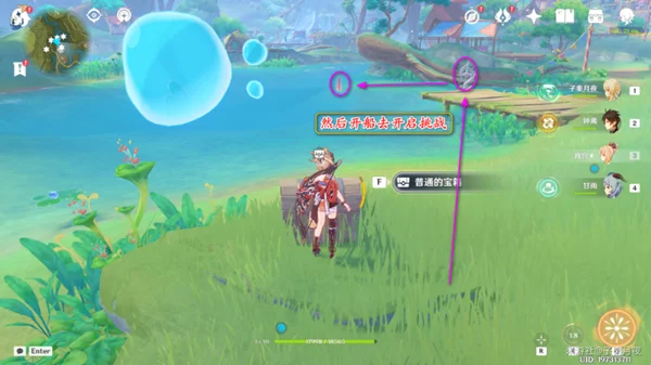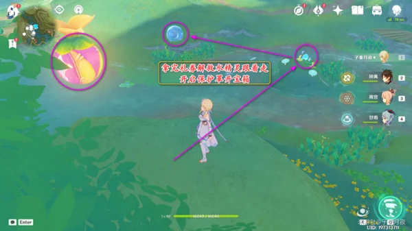 然后看向西边,有个被困的水精灵,过去解救之后跟着走,开启宝箱;