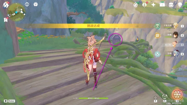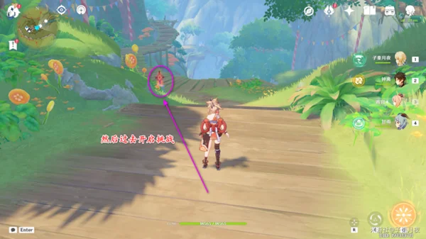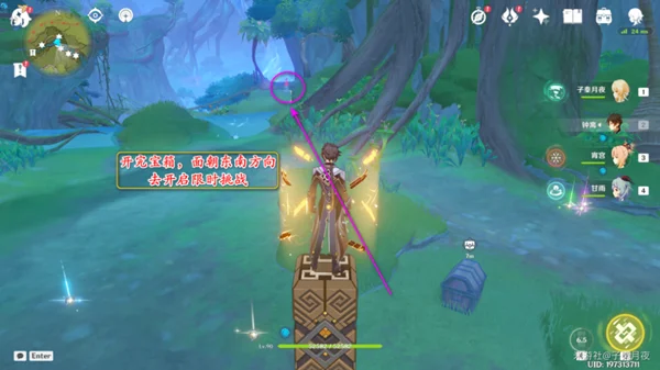 ①:然后看向东南方向,那边有个限时挑战,过去开启;