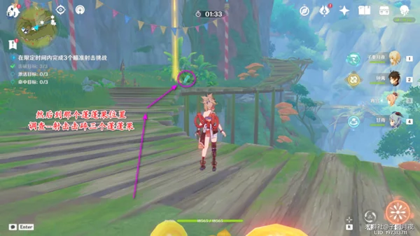②:射击挑战,先射击三个炸药桶;
