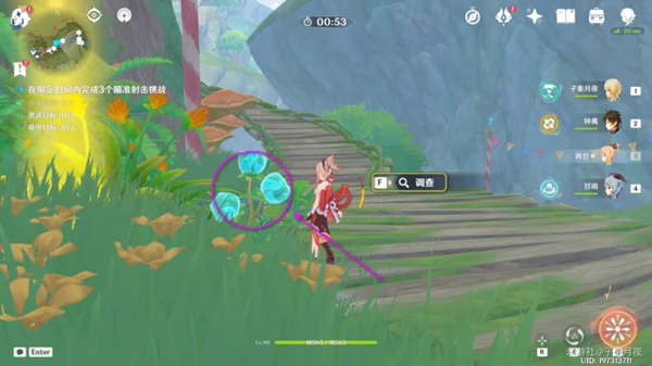 ①:然后看向东北方向,有个限时挑战,过去开启;