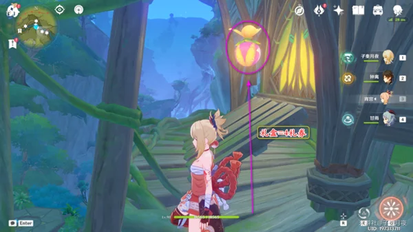 可以看到上面有个礼盒,过去拿取;